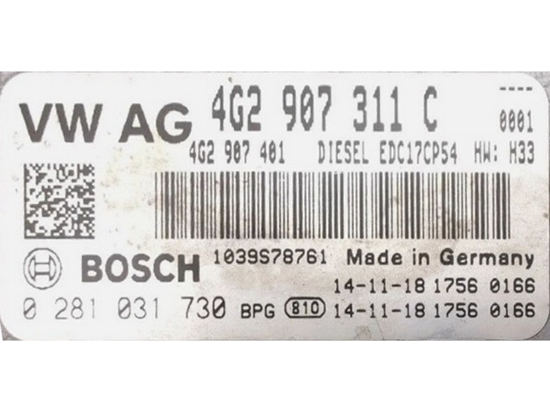 4G2907311C 4G2 907 311 C 4G2907401 4G2 907 401 0281031730 0 281 031 730 EDC17CP54-2.2 CRTE HW: H33 ecubackup: fls+mpc+epr=full clonabil: bench